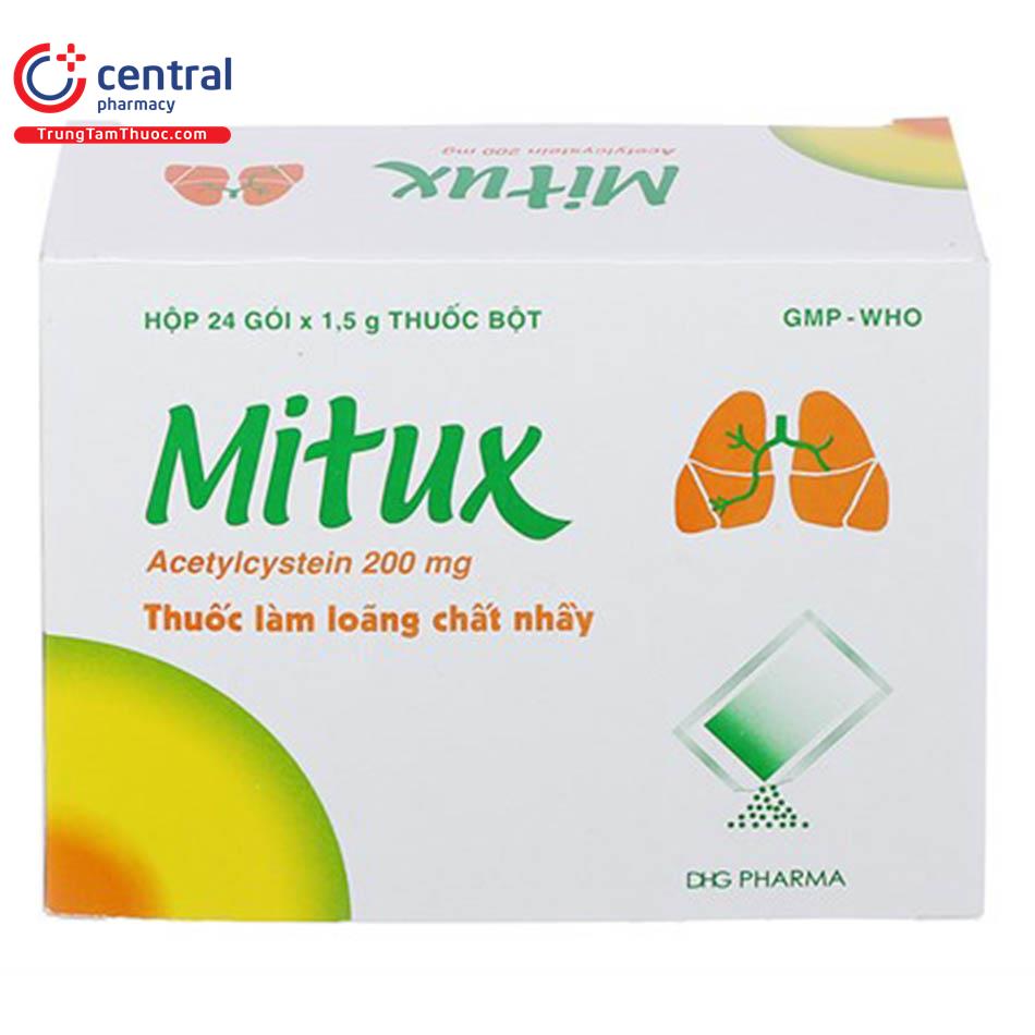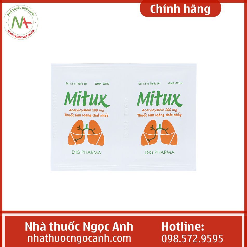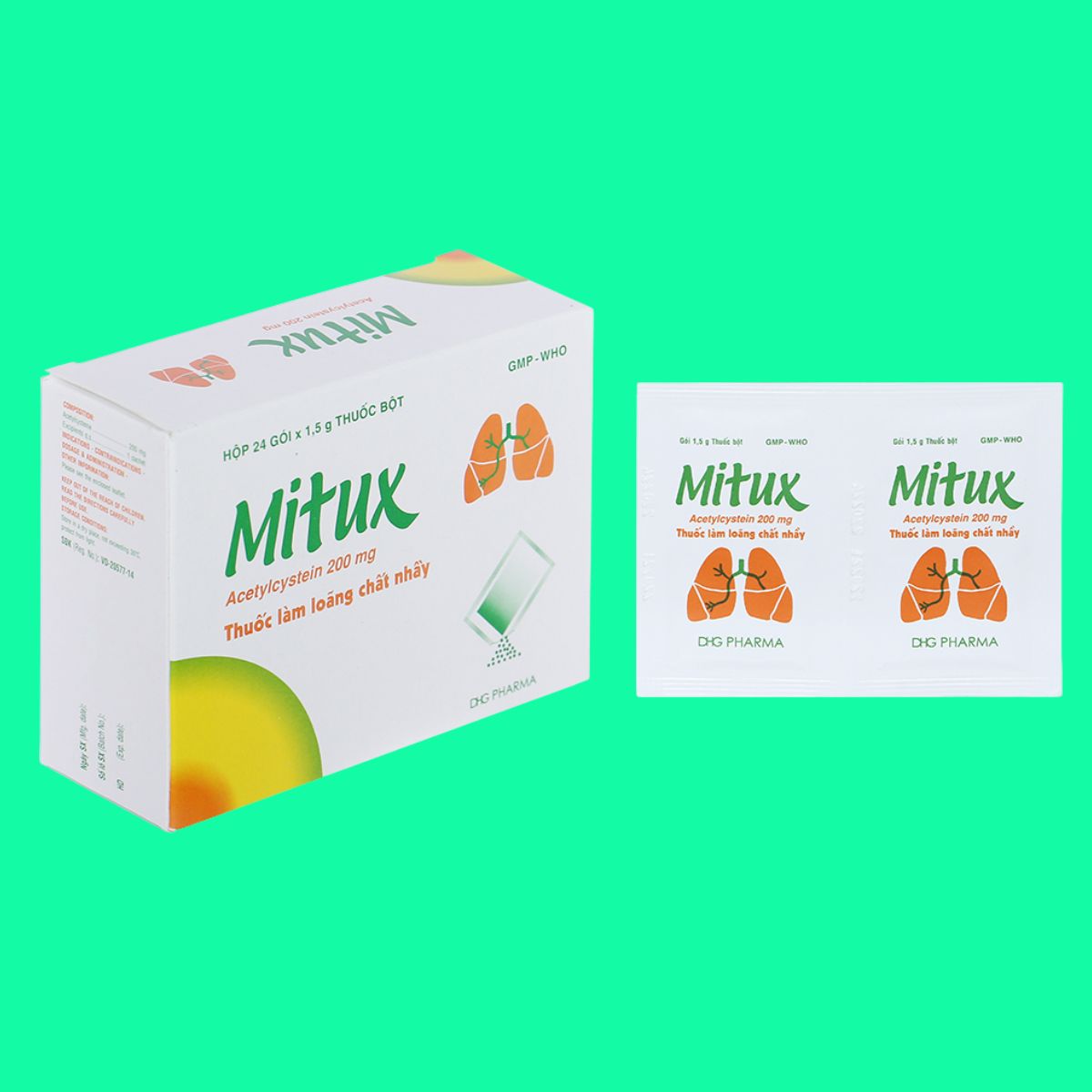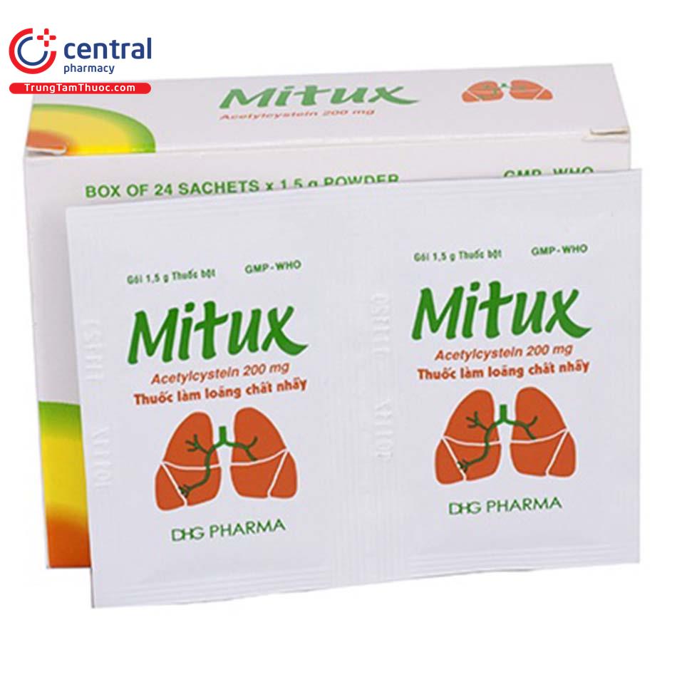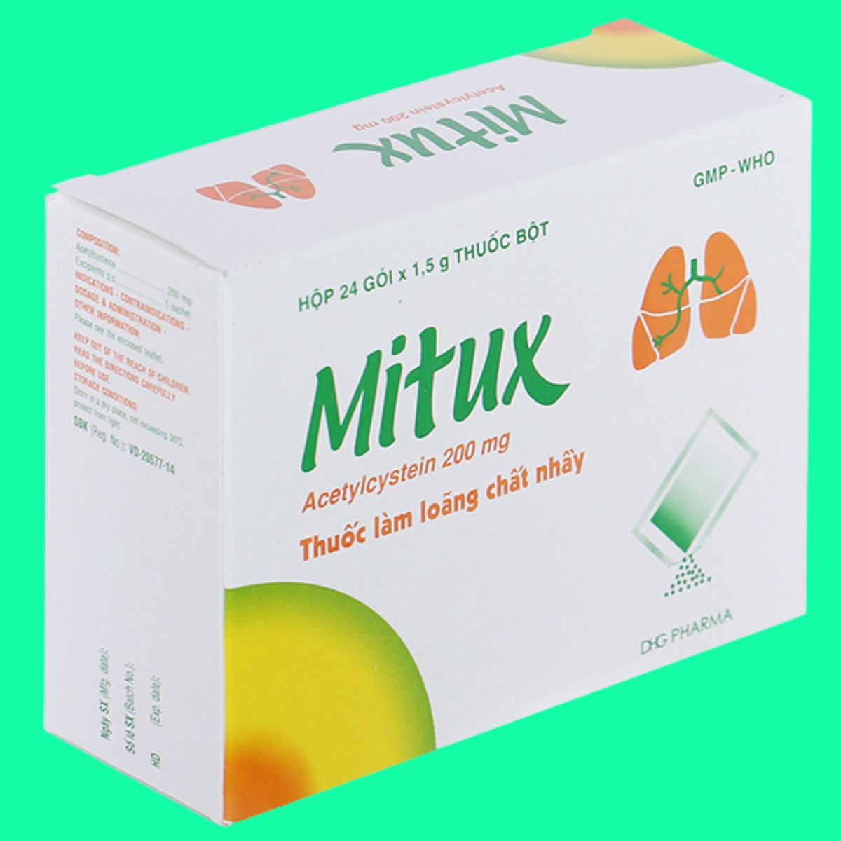 Mitux là một loại thuốc có tác dụng rất hiệu quả trong việc điều trị các bệnh lý hô hấp có đờm nhầy. Thành phần chính của thuốc là acetylcystein, giúp làm loãng chất nhầy và giảm độ quánh của đờm ở phổi, nhờ đó, bệnh nhân dễ dàng hơn trong việc khạc đờm.