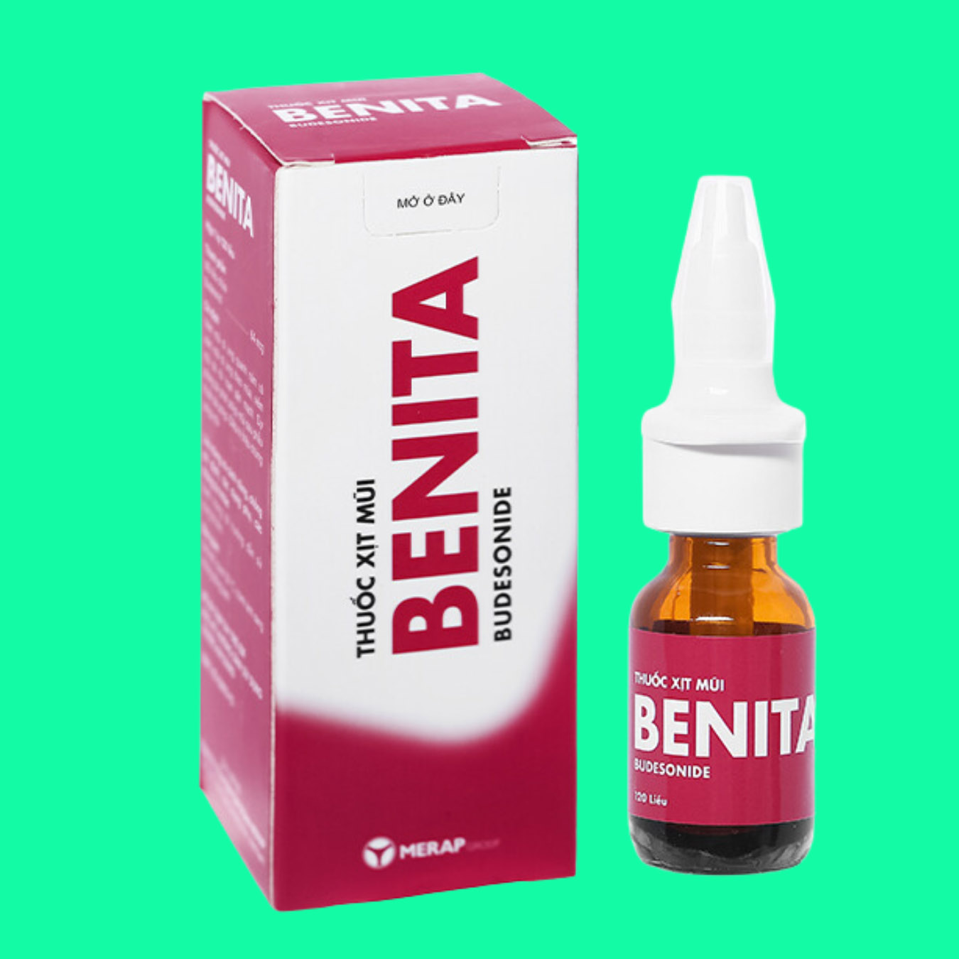Thuốc xịt mũi Benita Merap là sản phẩm hữu ích trong việc điều trị viêm mũi dị ứng quanh năm và viêm mũi dị ứng theo mùa. Thành phần chính của thuốc là Budesonid, một loại corticosteroid có khả năng chống viêm mạnh. Cụ thể, mỗi liều 0,05 ml thuốc sẽ chứa 64 microgam Budesonid, giúp ức chế quá trình tổng hợp Prostaglandin và giảm nhanh triệu chứng khó chịu do viêm mũi gây ra.